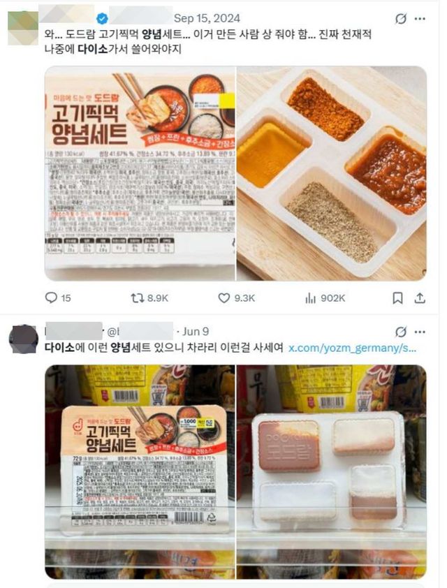 다이소 매장에서 판매하는 도드람 고기찍먹 양념세트가 인기를 끌고 있다. / SNS 캡처