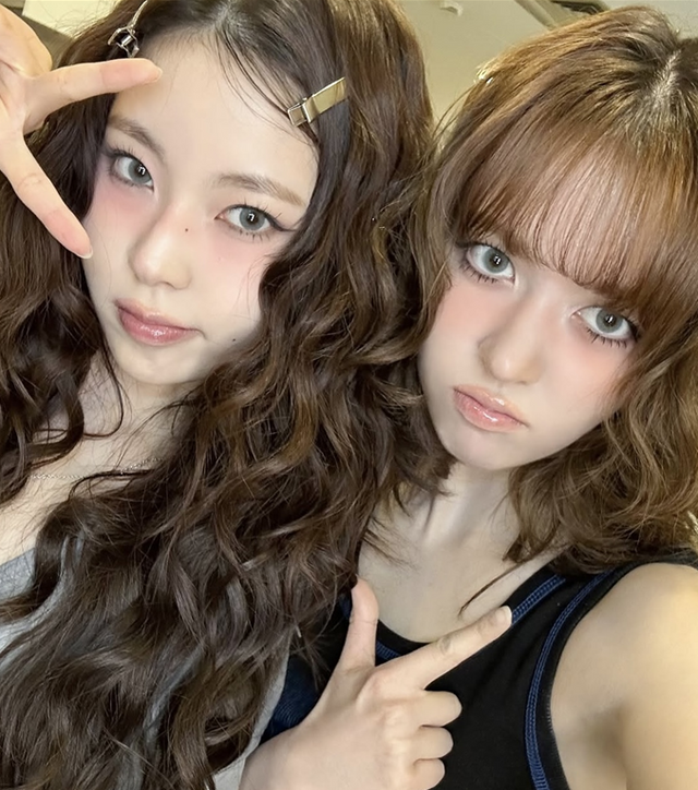 NMIXX(엔믹스) 규진과 릴리의 뷰티룩만 봐도 알 수 있듯이, 밝은 그린 컬러 렌즈는 뽀용한 투머치 블러셔 메이크업과도 조화롭게 매치된다.
