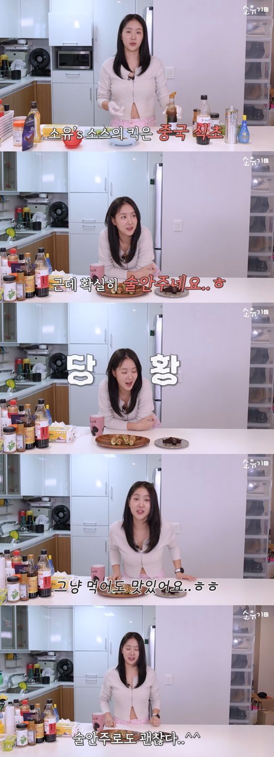 소유의 오이보트를 맛 본 제작진은 "확실히 술안주다"고 말했다. 이에 소유는 "그냥 먹어도 맛있는데, 술안주로도 괜찮다. 술이 막 땡기죠. 그게 문제긴 하다. 와인보다 고량주다"라며 당황하는 모습을 보였다.