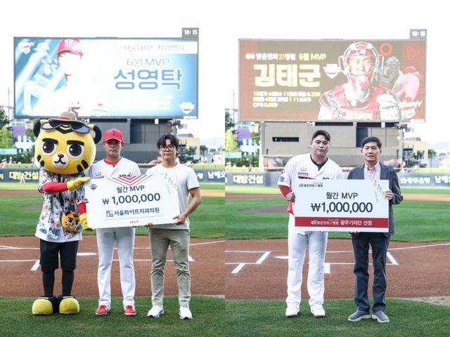 (엑스포츠뉴스 유준상 기자) KIA 타이거즈가 3일 광주-KIA챔피언스필드에서 열린 2025 신한 SOL Bank KBO리그 SSG 랜더스와의 시즌 10차전을 앞두고 월간 MVP 시상식을 개최했다.