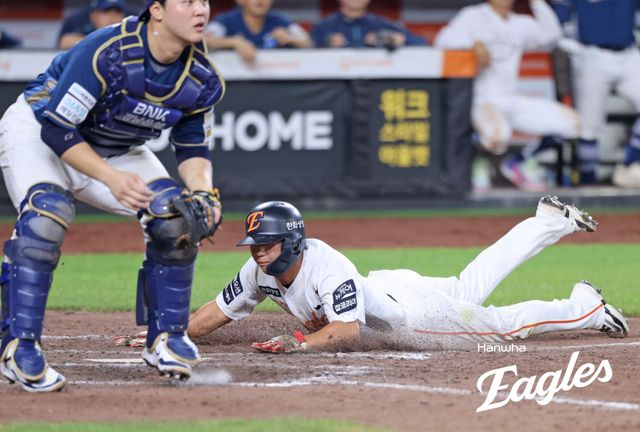 하지만 10회로도 경기는 끝나지 않았다. 이원석과 리베라토가 연속 볼넷으로 출루하면서 무사 1, 2루의 기회를 만들었고, 문현빈의 땅볼에 1사 1, 3루. 이어 노시환 타석에서 2루수 박민우의 실책이 나왔고, 그 사이 3루에 있던 이원석이 홈을 밟으며 7-7을 만들었다.