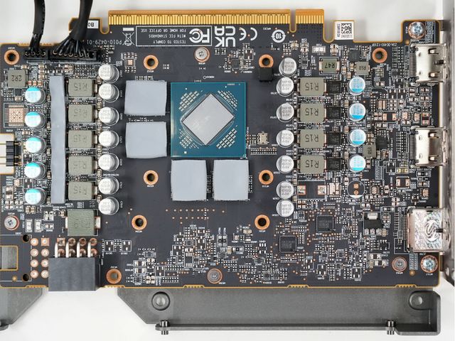 그래픽카드 기판도 신경써서 만들었다. GPU 와 메모리에서 요구하는 높은 속도와 늘어난 전력량, 고전류를 충족하기 위해 고밀도 10레이어 2온스 구리를 썼다. 높은 유리전이 온도를 가진 PCB를 채택해서 안정성을 더욱 높였다. 전원부 설계에서는 정확한 전원 제어와 뛰어난 전력효율성을 가진 디지털 전원 설계로 안정적 성능을 보장한다. 외부 PCI-E 전원 커넥터 회로에 퓨즈 보호 기능이 내장되어 부품 요소를 안전하게 보호한다.