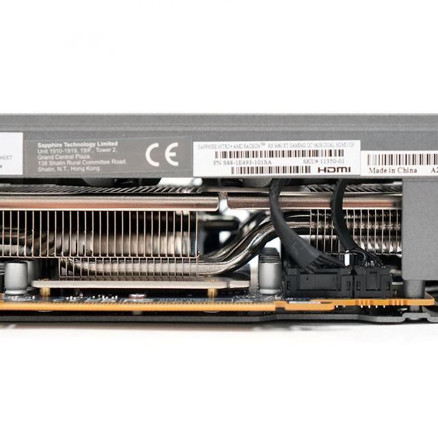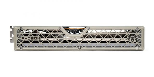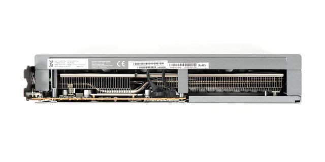 뒷면은 기판을 보호하는 금속 백플레이트로 덮여있다. 중앙에 약하게 이미지 로고가 있고 상단 좌측에 'AMD RADEON' 프린팅이 되어 있다. PCB 기판 전체를 덮는 다이캐스트 백 플레이트는 알루미늄으로 만들어져 뛰어난 열방출성을 가진다. 기판이 없는 부분은 프리 플로우 쿨링 디자인으로 자유롭게 공기 흐름을 주는 형태를 했다. 열을 신속히 빼내면서 오랜 시간 사용해도 PCB가 휘거나 먼지로 인해 오염되는 것을 방지한다.