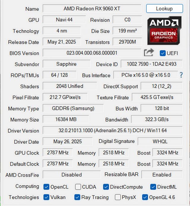 칩셋 : AMD Radeon RX 9060 XT (RDNA 3, TSMC 5 nm)