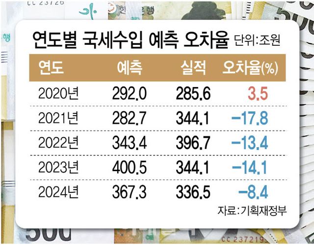 이상민 나라살림연구소 수석연구위원은 “과거 세수결손의 근본 원인은 법인세 예측 실패였다”며 “올해는 미 관세 영향으로 불확실성이 더 높아진 상황이기 때문에 9월 내년도 예산안 국회 제출 때 세수 추계를 하고 11월 예산안 심의때 3분기 기업실적을 반영해 재추계하면 오차를 크게 줄일 수 있을 것”이라고 했다.