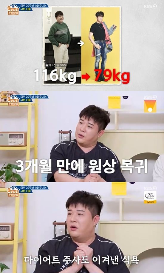 그러나 이는 오래가지 못했다고. 신동은 "더 행복한 게 뭘까라는 선택을 했다. 원래대로 돌아가고 싶어는 아니고 이만큼 뺐으니까 조금 더 먹어볼까 했다며, 자기 합리화를 했다"며 "3개월 만에 요요현상이 왔다"고 밝혔다.