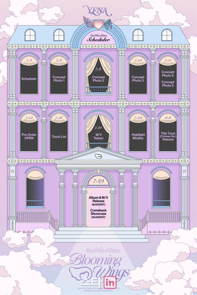최예나는 4일 공식 사회망관계서비스(SNS)를 통해 4번째 미니앨범 ‘블루밍 윙스’(Blooming Wings) 홍보 일정을 담은 스케줄러 포스터를 공개했다.