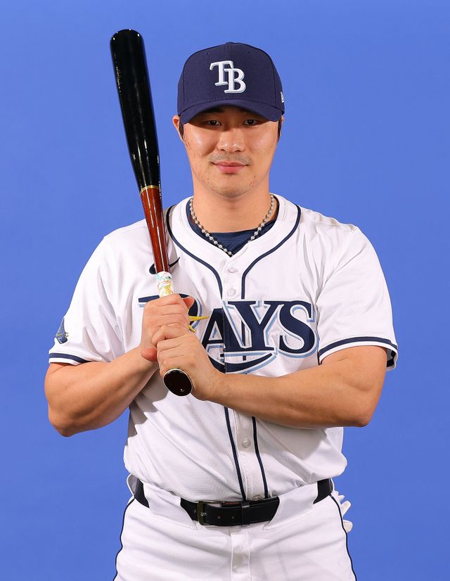 김하성은 탬파베이 유니폼을 입고 이적 신고식을 앞두고 있다.