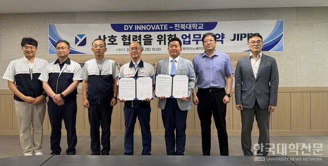 [한국대학신문 문화춘 기자] 전북대학교 지식재산전문인력양성사업단(단장 송철규, 이하 JIPEC)과 DY INNOVATE㈜(대표 이승창, 전북특별자치도 선도기업 대표자 협의회장)가 지식재산(IP) 기반의 산학협력을 강화하기 위해 최근 협약을 체결했다고 4일 밝혔다.