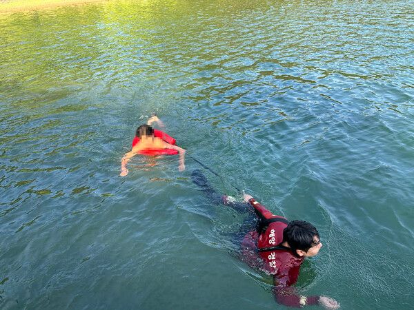 그러나 수심이 얕아 더 이상 접근이 불가하여 해양경찰관이 바닷물에 직접 입수해 무사히 구조했다.