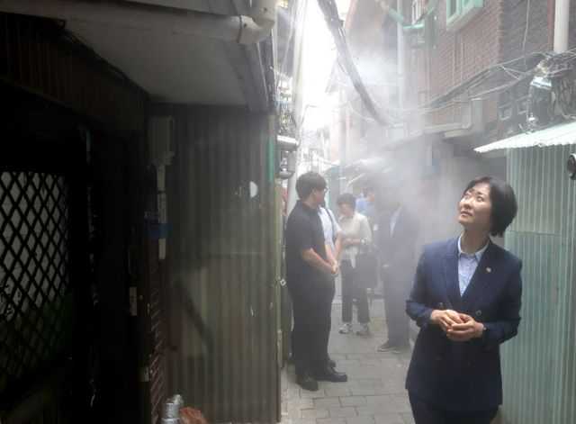이후에는 쪽방촌으로 이동해 물안개 분사장치(쿨링포그)와 쪽방 건물 내 설치된 공용에어컨 가동 현황을 점검했다.