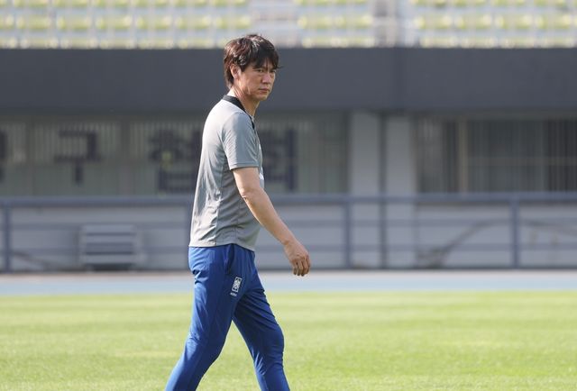 홍명보 감독이 동아시안컵에 출전한 대한민국 축구대표팀 선수들의 훈련을 지켜보고 있다. 자료 사진 / 뉴스1