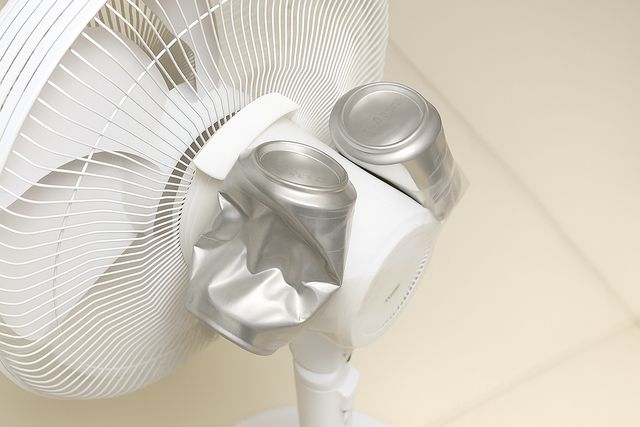 또 다른 방법으로는 다 마신 음료수 캔을 재활용하는 것이다. 빈 알루미늄 캔을 적당히 눌러서 모양을 변형시킨 후 선풍기 모터 부분 위에 올려놓으면 캔이 모터에서 발생하는 열을 흡수해 더 시원한 바람을 만들어낸다.