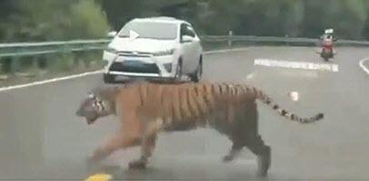 웨이보, 더우인 등 중국 사회관계망서비스(SNS)에 공유된 영상에는 여유롭게 도로를 가로질러가는 백두산 호랑이 모습이 담겼다. 호랑이는 유유히 차를 앞서 걸어가기도 했다. 약간 야윈 듯한 호랑이는 잠시 어슬렁거리다 인근 산으로 되돌아갔다.
