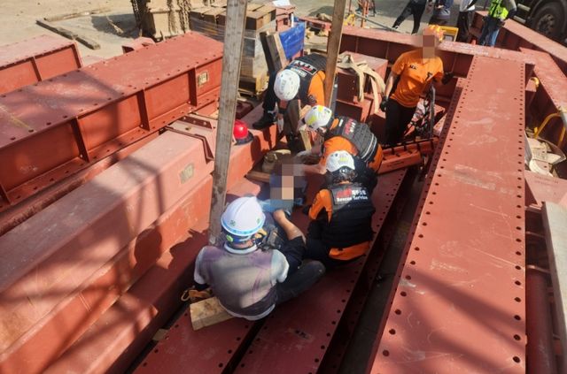 공사현장에 쌓여 있던 H빔(건물의 뼈대를 만들 때 사용되는 철재 기둥)이 A씨 쪽으로 무너지면서 오른쪽 다리가 골절된 것으로 전해졌다.