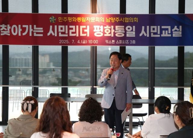 [와이뉴스] 남양주시는 민주평화통일자문회의 남양주시협의회가 4일 금곡동 소재 카페에서 지역 시민 리더를 대상으로 연중 추진하고 있는 ‘제3차 찾아가는 평화통일 강연회’를 개최했다고 밝혔다.