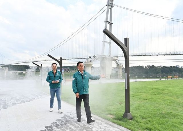 [와이뉴스] 여주시는 전국적인 폭염특보 발효에 따라 지난 7월 1일 신륵사 공원(출렁다리 북단)에 설치된 쿨링포그(안개 분사장치)를 직접 확인하며 폭염 대응 현장을 점검했다.