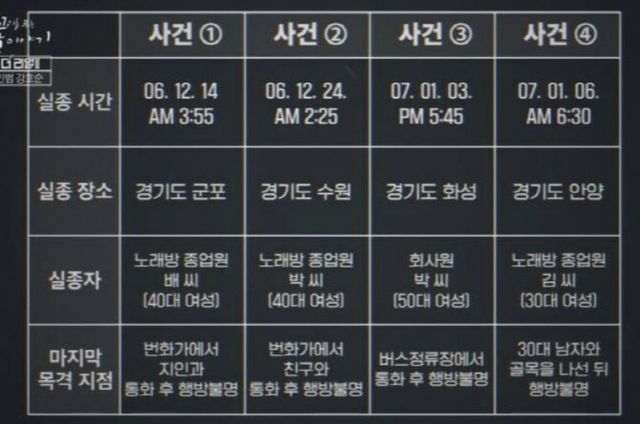 이에 조사관이 “강원도 어디에서요?”라고 묻자 그는 “정선”이라고 답했다. 자신이 2년 반 전에 강원 정선구청 여직원을 살해했다고 밝혔다.