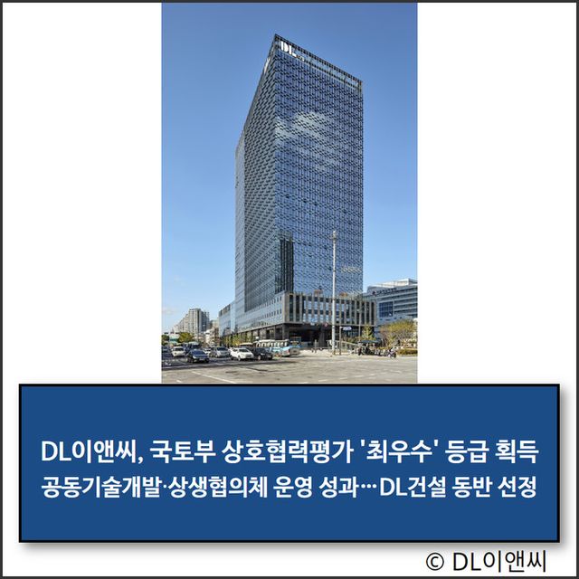 DL이앤씨(375500)가 국토교통부 주관 '건설사업자 간 상호협력평가'에서 '최우수'를 획득했다고 4일 밝혔다. DL건설(001880) 또한 함께 최우수 등급에 이름을 올려 그룹 차원의 동반성장 성과를 입증했다.