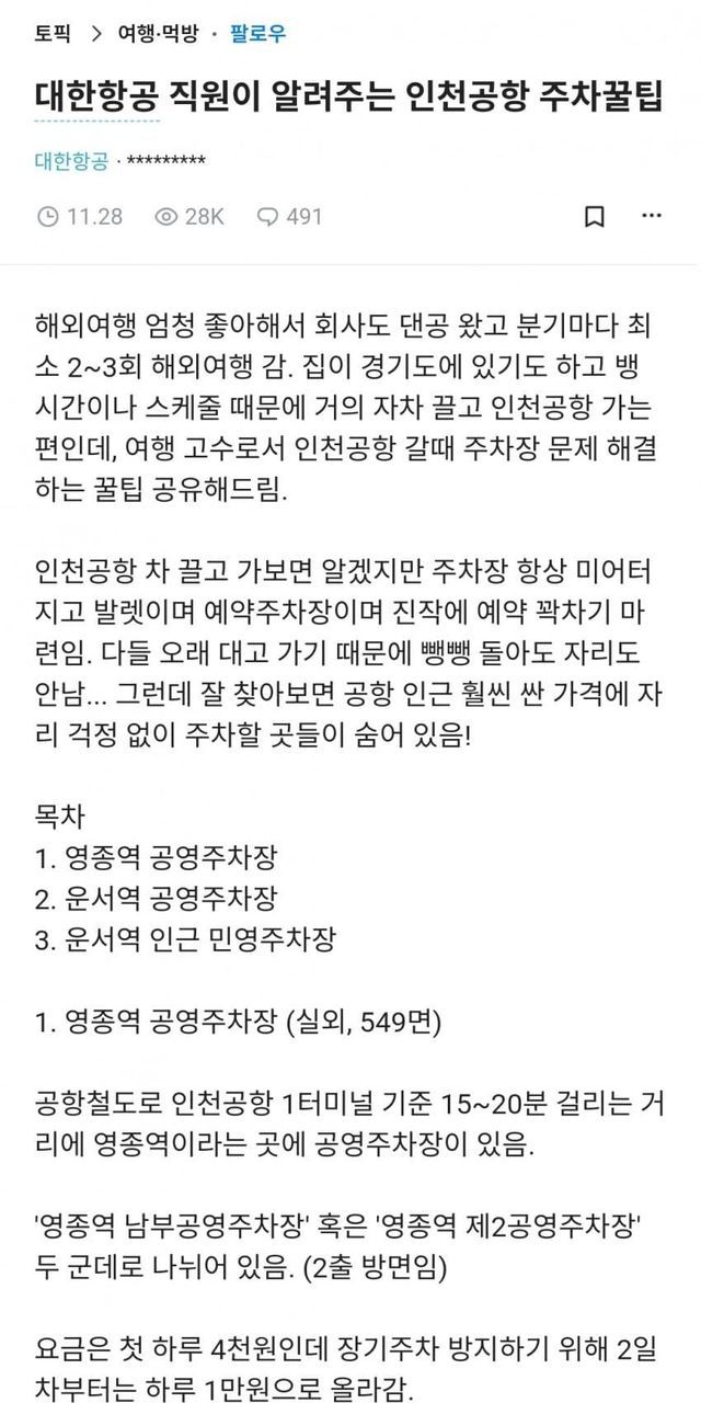 대한항공 직원이 알려주는 인천공항 주차 꿀팁