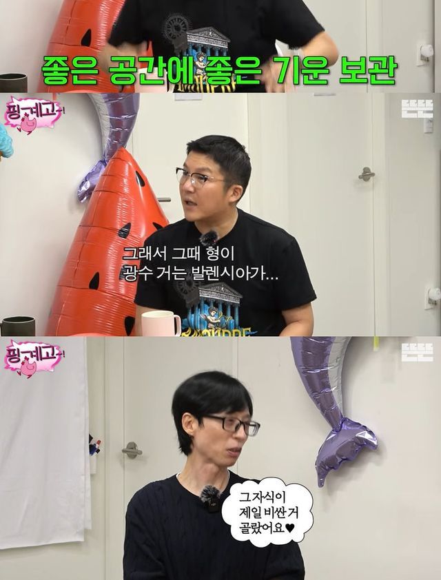 조세호가 "광수 거는 발렌시아가"라고 하자 유재석은 "광수는 발렌시아가를 좋아한다고 그랬다"면서 "그 자식이 제일 비싼 거 골랐다"며 너스레를 떨었다.