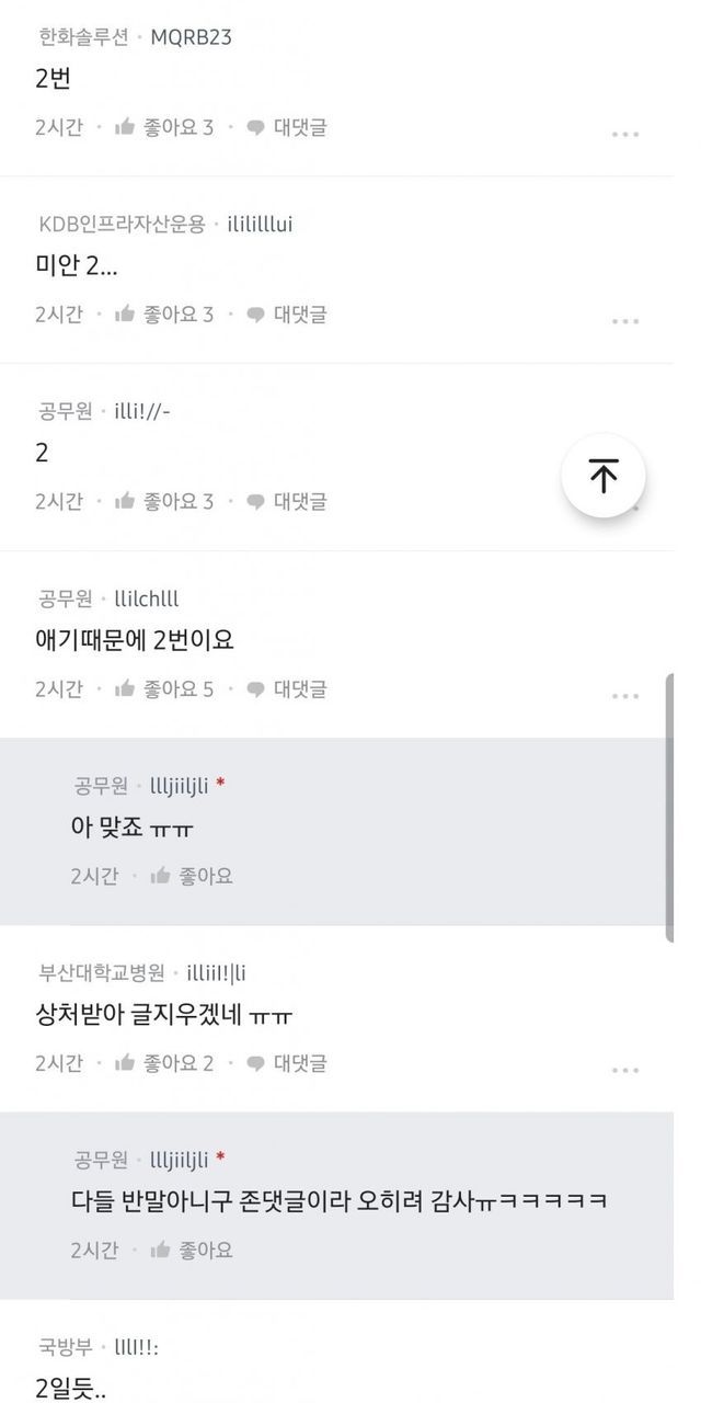 중붕이들은 1번임 2번임?