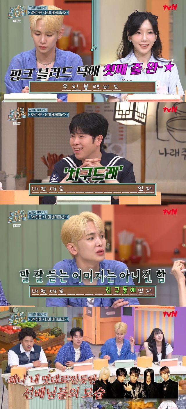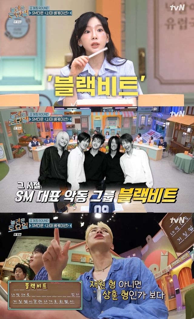 이어 키는 앞 가사 '와츠 업'과 합쳐 '와츠 업 우린 블랙비트'가 정답이라고 추측했다. 이렇게 키와 태연의 'SM 핑크 블러드' 활약으로 첫째 줄이 완성됐고, 박나래는 "피오가 뒤에 발음을 들었다고 하더라"고 말해 눈길을 끌었다.