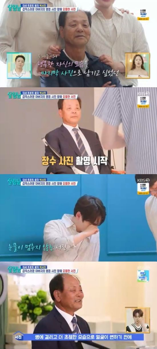 이날 박서진은 아버지가 장수사진을 찍는 것을 지켜보면서 눈물을 쏟았다.
