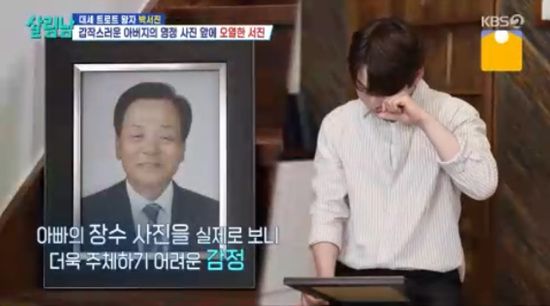 박서진은 제작진을 통해 아버지 장수사진을 확인하고는 감정을 주체하지 못했다.