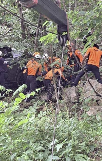추락 당시 차량이 나무 등에 걸리며 충격 일부를 완화해 생명에 지장을 줄 정도의 중상자는 없는 상태인 것으로 알려졌다.