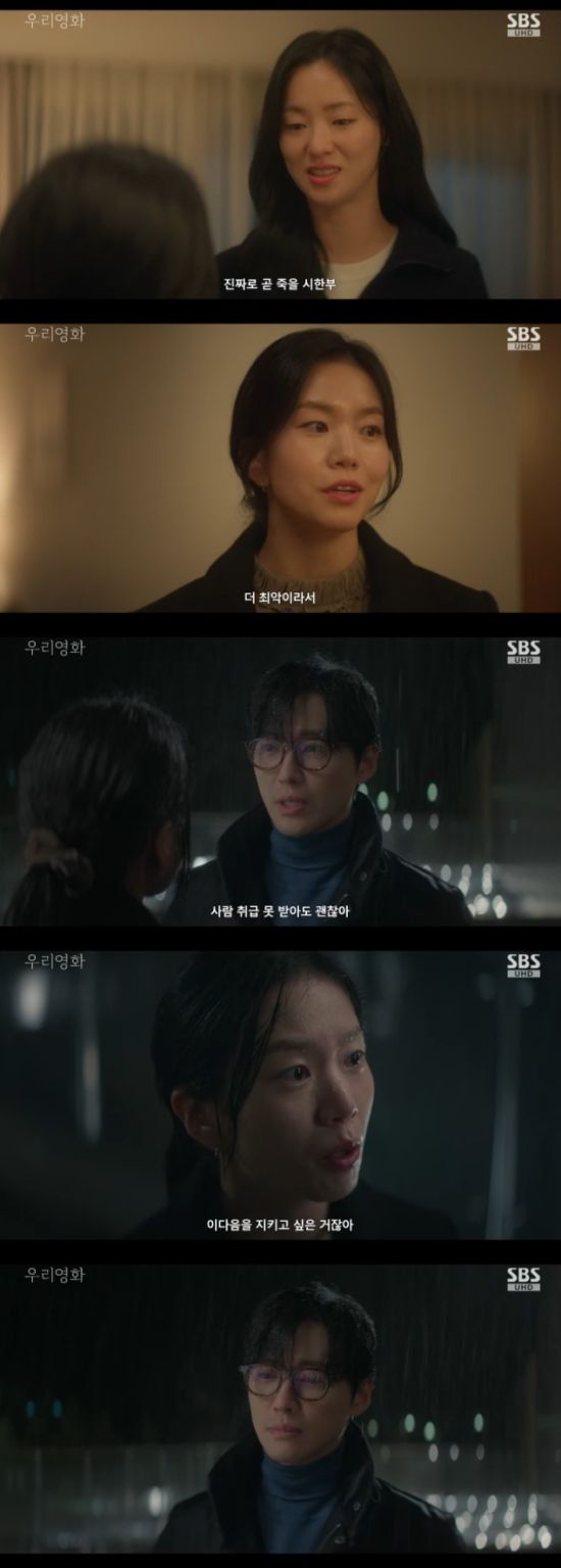 이제하의 대답에 채서영은 "당신은 영화를 지키고 싶은게 아니라 이다음을 지키고 싶은거잖아. 이다음한테 마음 있는거 알겠어. 근데 난 그 마음이 왜 이렇게 우스울까? 이제하가 진짜 모든걸 내렿놓고 사랑같은 걸 할 수 있을까? 끝을 알고도 정말 그렇게 할 수 있을까?"라고 했다.