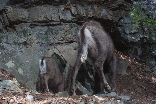 올해 태어난 새끼 산양(오른쪽) / 연합뉴스, 양구군 제공