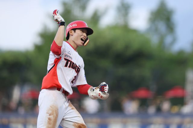 김도영(햄스트링) 나성범·김선빈(이상 종아리) 등 주전 선수들의 부상 탓에 기회를 잡은 김호령은 조금씩 입지를 넓히고 있다. 타격 페이스가 상승 곡선을 그리면서 선발 라인업 한 자리를 꿰찬 모양새다. 김호령의 7월 월간 타율은 5일 기준으로 0.444(18타수 8안타)에 이른다. 안현민(KT 위즈) 고종욱(KIA·이상 .500)에 이은 공동 4위. 월간 장타율은 0.944로 '괴물 중고 신인' 안현민(0.938)에 앞선 리그 2위(1위 패트릭 위즈덤·1.056)이다.