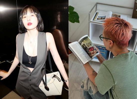 사진 속 현아는 회색 민소베 베스트형 원피스 안에 검은색 브라톱을 매치해 과감하고 세련된 스타일을 선보였다.