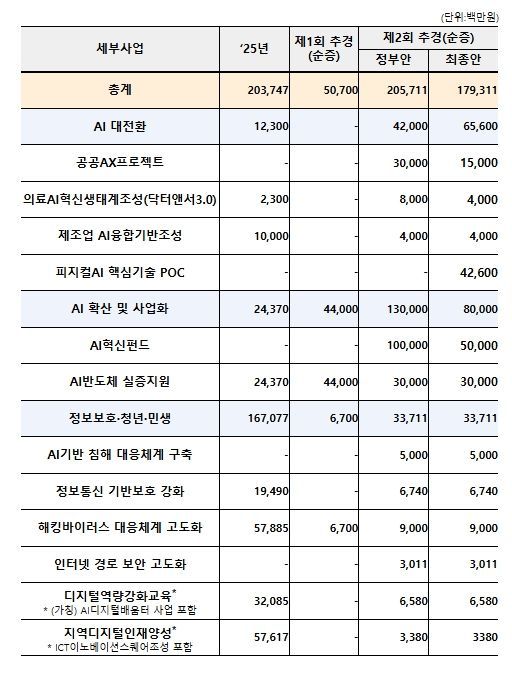 이번 제2회 추경은 경기진작을 위해 AI 전환과 국민 체감도 제고에 초점을 맞추어, AI의 활용 확산을 통한 우리나라 산업을 고도화하고, 공공서비스를 혁신하는 한편, 국가 정보보호체계를 강화하기 위한 내용을 담고 있다.