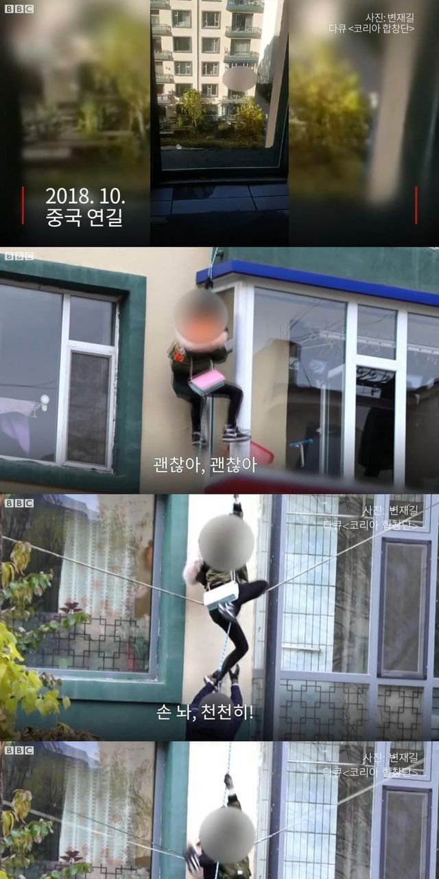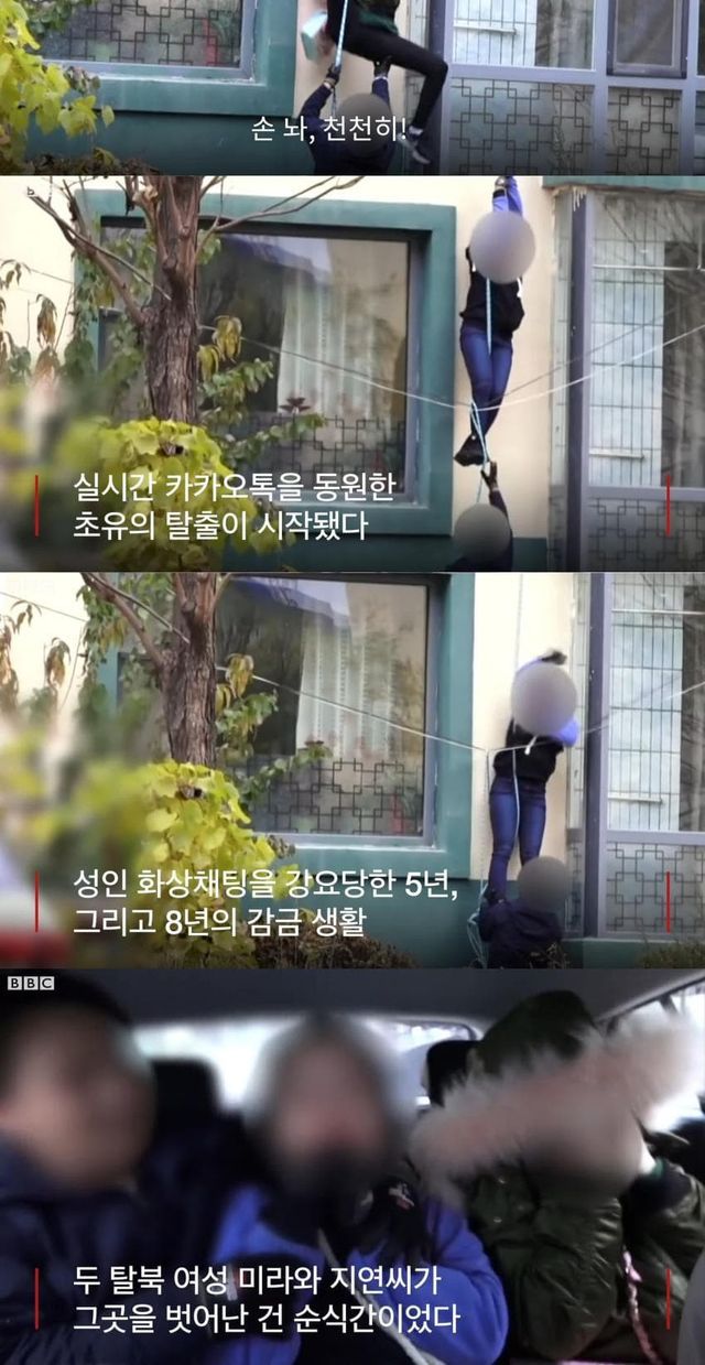 중국 연길 아파트에 감금되어 성노예 생활을 하던 탈북녀들이 탈출하는 모습