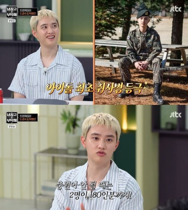 도경수는 “(군 생활 당시) 기본 4명이 180인분을 만들었고, 2명이 180인분을 만들기도 했다”고 떠올렸다. 이에 윤남노 셰프는 “난 레바논 평화유지단에 파병을 갔다. 경쟁률 200대 1이었다. 인당 2인분씩 700인분을 요리했다”고 회상했다.