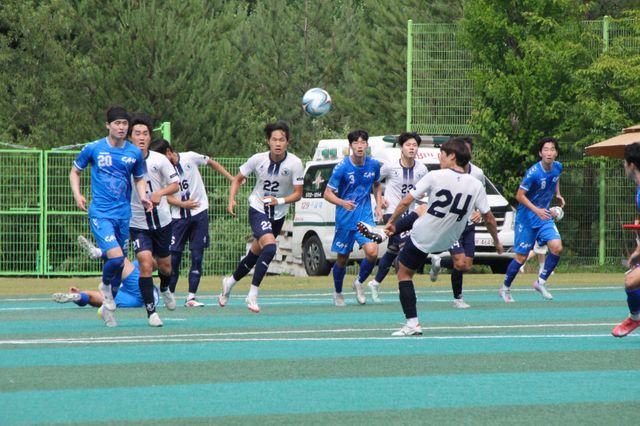 동국대는 위덕대에 선제골을 내주며 불안하게 출발했으나, 후반 11분 허지원의 환상적인 중거리포로 균형을 맞췄다. 이어진 팽팽한 흐름 속에서 경기 막판 조은준의 결승골이 터지며 2-1 역전에 성공하였다. 동국대는 리드를 끝까지 지켜내며 조 1위로 16강에 직행했다.