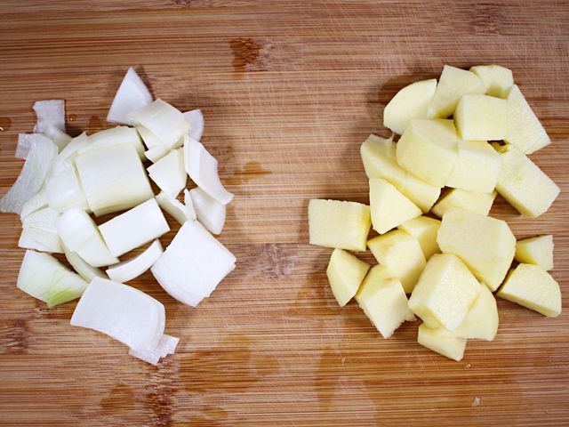 사과 반개, 양파 반개를 적당한 크기로 썰고요.