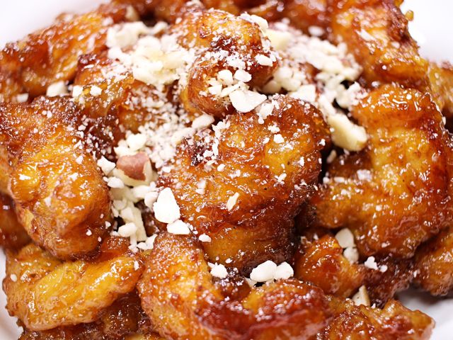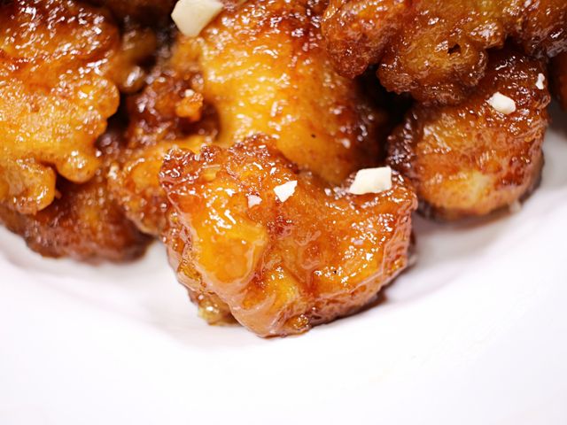 바삭한 튀김옷과 윤기 자르르 흐르는 양념 코팅.