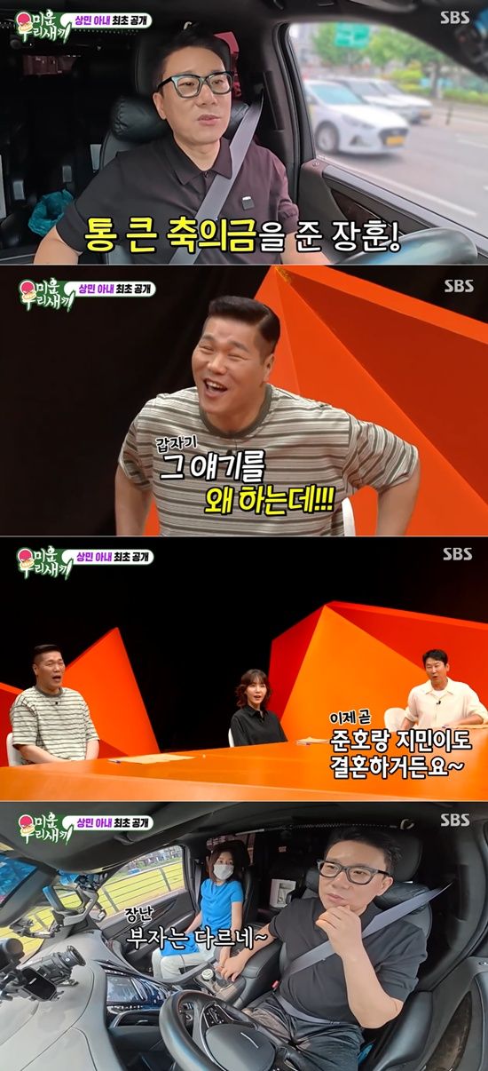 이를 접한 서장훈은 당황한 듯 "그 이야기를 왜 지금 하냐"고 반응했다. 이에 신동엽이 "곧 김지민, 김준호도 결혼한다"라고 말했고, 서장훈은 "이상민은 빚도 다 갚았고"라며 각별한 친분을 과시했다.