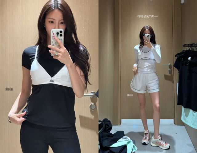 공개된 사진 속 효민은 탈의실에서 여러 운동복을 입어보고 있는 모습이다. 블랙 반소매 티셔츠에 레깅스를 입은 효민은 상의 위에 화이트 브래지어를 겹쳐 입고 거울 셀카를 찍는가 하면, 올화이트 룩을 소화하며 늘씬한 각선미를 자랑했다. 스포츠 브래지어를 뷔스티에처럼 착용한 효민의 과감한 패션 센스가 눈길을 사로잡는다.