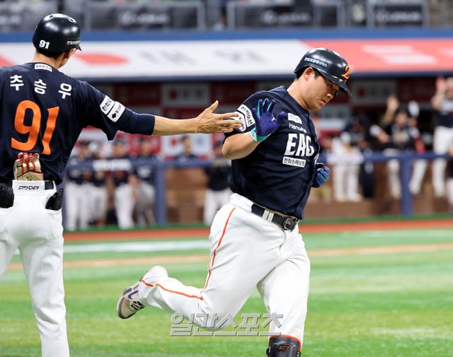 노(老) 감독은 당장 성적보다 팀에 기여하려는 젊은 선수의 근성을 더 높이 평가했다. 무론 팀 내 입지, 연봉 등 여러 가지 면에서 노시환은 더 좋은 성적을 내줘야 한다. 하지만 그가 타선에 없다는 전제로 한화 공격을 떠올리면 선수의 가치를 '숫자'만으로 평가하기 어렵다는 걸 공감할 수 있다. 여기에 김경문 감독은 준수한 수비로 매 경기 핫코너를 지켜주는 노시환의 공을 더 치켜세웠다.
