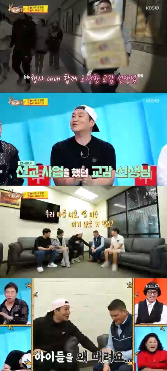 송정훈은 교감 선생님한테 "우리 애들 있는 거 알죠? 잘해주지 말고 때려라"라며 때리는 게 안 되면 꼬집으라고 얘기했다.