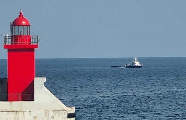 북한 주민 4명이 강원도 속초 인근 해상을 통해 귀순한 2023년 10월 24일 해경 선박이 이들이 타고온 소형 목선을 인근 군부대로 예인하고 있다. / 뉴스1