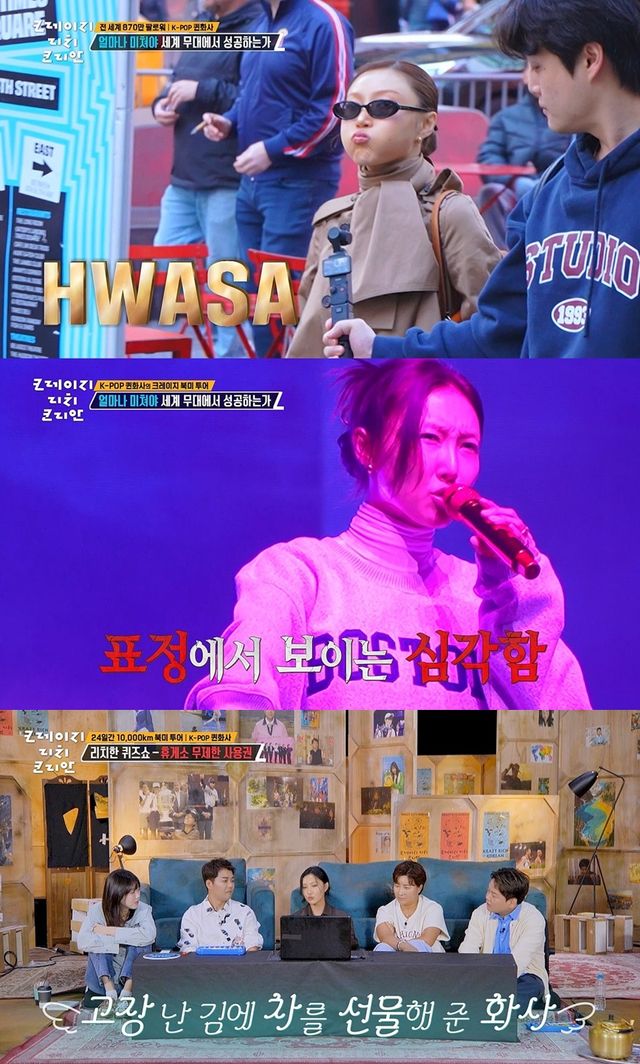 북미 11개 도시를 방문하는 첫 단독 솔로 북미투어를 떠난 화사는 타이트한 일정에도 뉴욕의 유명 맛집과 랜드마크를 찾아가 영상을 촬영하며 워커홀릭다운 면모를 뽐냈다. 또 피로가 누적된 상태에서도 운동을 빼먹지 않는 성실한 모습으로 MC들의 감탄을 유발했다.