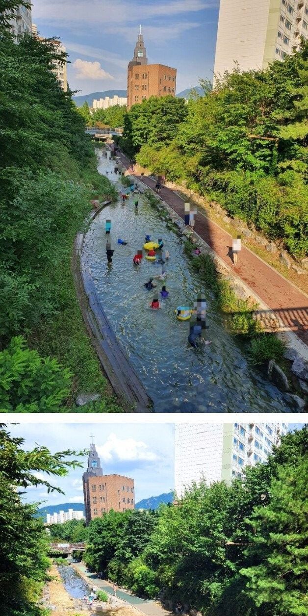 관악산에서 이어지는 계곡물이 단지 가로지름