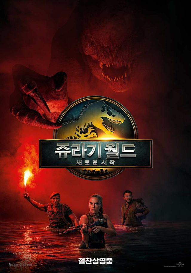 경이로운 자연 배경 속에서 타이타노사우루스, 모사사우루스, 케찰코아틀루스 등 초대형 공룡들이 차례로 등장하고, 예측 불가능한 포악한 종 디렉스(디스토르투스 렉스)가 강렬한 존재감을 드러낸다. 어둠 속 날카로운 이빨을 드러낸 채 다가오는 디렉스의 포스터는 공포감을 극대화하며 관객의 눈을 사로잡았다. 그 앞에 선 조라, 던컨, 헨리 박사는 한 치 앞도 알 수 없는 긴박한 전개를 암시하며 극장가에 긴장감을 불어넣었다.