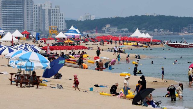 경포해수욕장에서 피서객들이 무더위를 식히고 있다. / 연합뉴스
