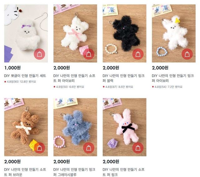 구성은 간단하지만 종류는 다양하다. 강아지, 토끼, 고양이 등 귀여운 캐릭터로 구성돼 있어 시리즈로 모으는 재미도 있다. 완성된 인형은 손바닥 안에 들어올 정도의 미니 사이즈로, 가방 고리나 책상 소품으로 활용할 수 있다.